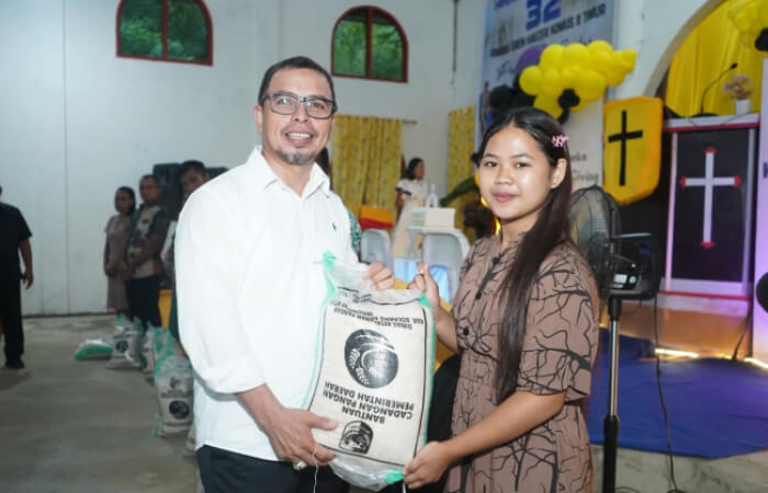 “Bantuan ini merupakan wujud kehadiran pemerintah di tengah masyarakat. Kami berharap bantuan beras ini dapat membantu meringankan beban keluarga penerima manfaat, terutama di tengah perayaan syukur jemaat hari ini,” ujar Bupati.