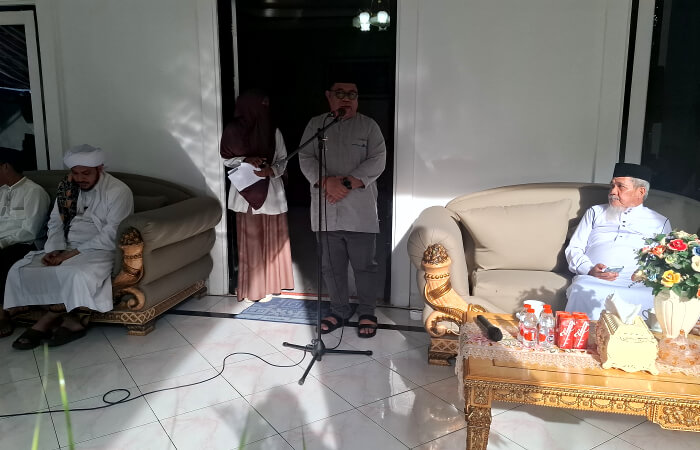 Sekda Kabupaten Gorontalo Sugondo Makmur saat memberikan sambutan dalam acara halalbihalal bersama Syarikat Islam. (Foto: Humas)