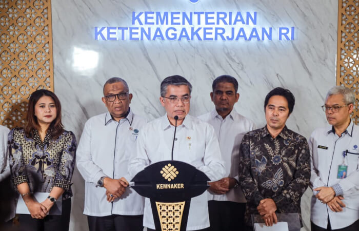 Imbauan tersebut disampaikan dalam konferensi pers di Gedung Kementerian Ketenagakerjaan, Jakarta, Rabu (1/4/2026), yang turut dihadiri Wakil Menteri Ketenagakerjaan, Afriansyah Noor, serta perwakilan LKS Tripnas dari unsur pengusaha dan pekerja.