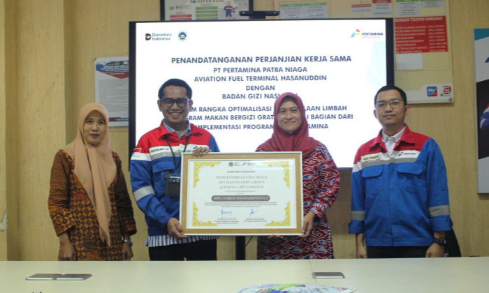 Langkah strategis ini ditandai dengan penandatanganan kerja sama antara AFT Hasanuddin dan Badan Gizi Nasional, yang berlangsung di ruang rapat AFT Hasanuddin pada Jumat (18/7). Hadir dalam acara tersebut Aviation Fuel Terminal Manager Hasanuddin Andreas Yanuar Arinawan, Direktur Wilayah III Badan Gizi Nasional Enny Indarty, S.STP, M.Si, Ketua Kelompok Ternak Laleng Kassie, Maryama, serta jajaran manajemen dan karyawan Pertamina.