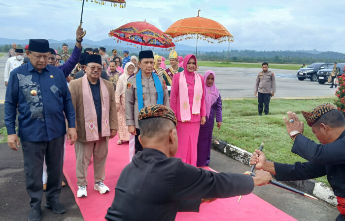 GOSULUT.ID – Kedatangan Kapolda Gorontalo yang baru Irjen Pol Widodo didampingi istri di Bumi Serambi Madinah disambut dengan adat Mopotilolo di VIP Bandara Djalaluddin, Kamis (21/08/2025).